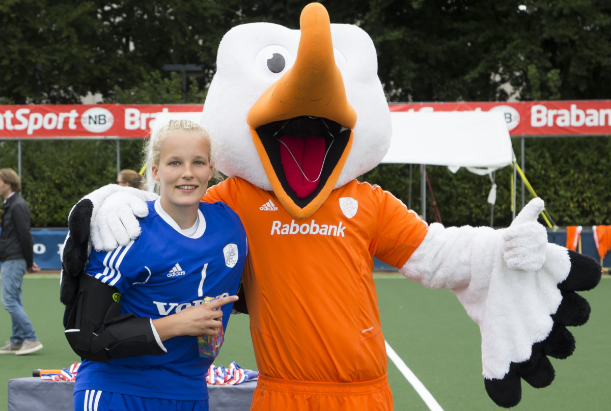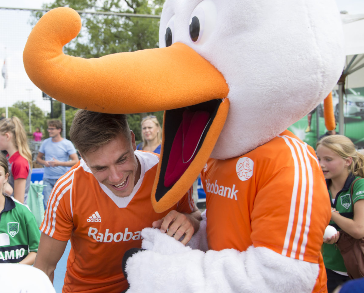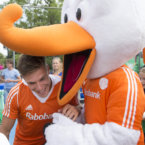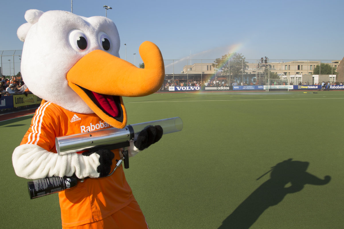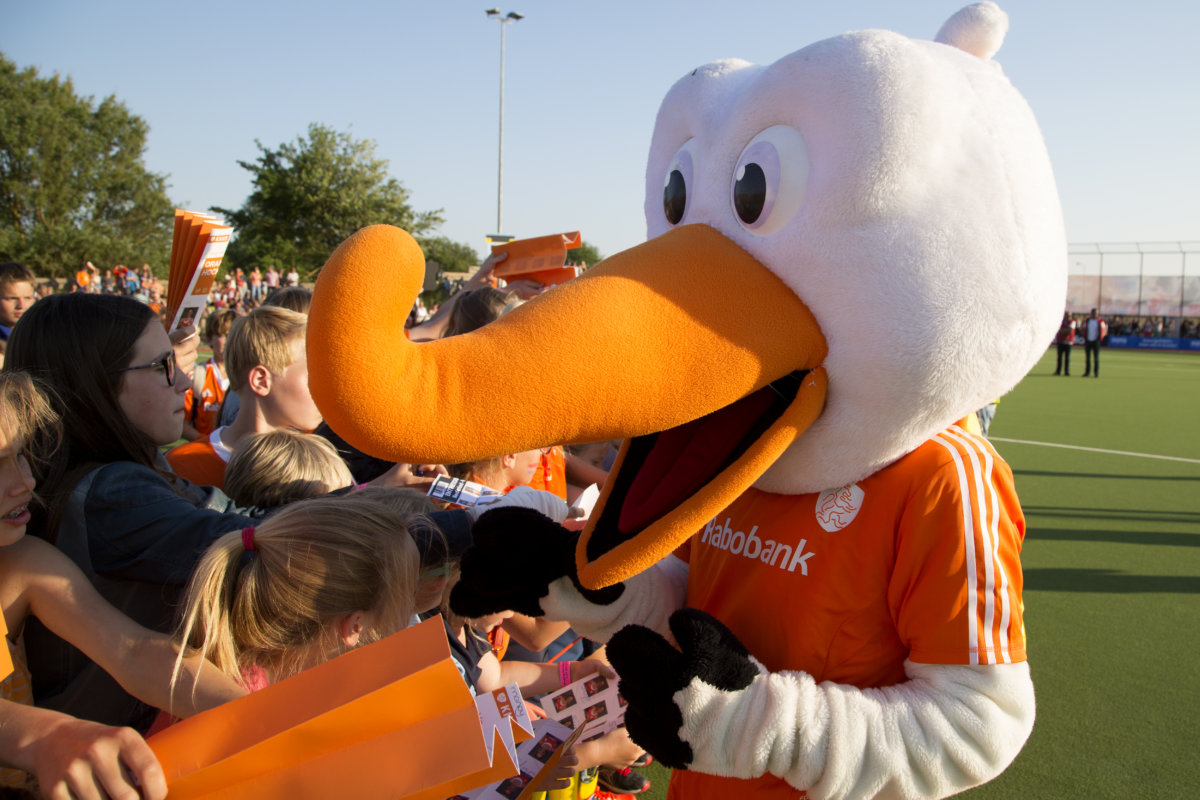 Niet alleen Oranje, maar ook Stockey levert bijzondere prestaties. De mascotte is vierde geworden tijdens het NK 60 meter mascotterace. Stockey legde de 60 meter af in 16,31 seconden.