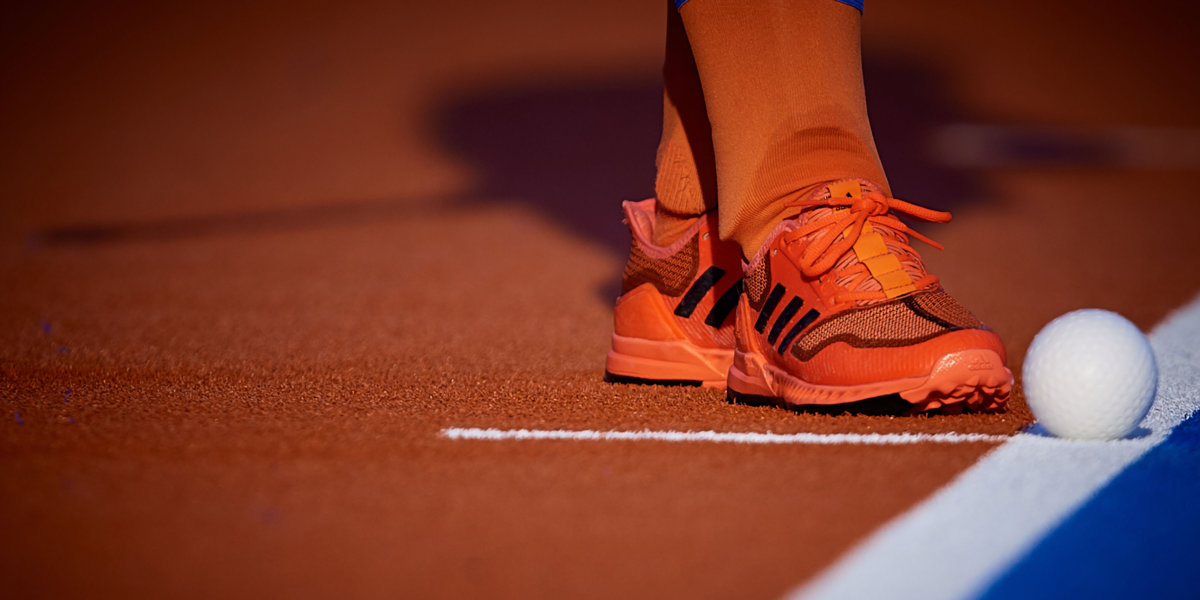 ‘Je ziet aan het silhouet van de speler dat ze klaar is om de bal aan te geven. Het is geen gebruikelijke foto van een strafcorner. Het zonlicht is hier een toegevoegde waarde.’