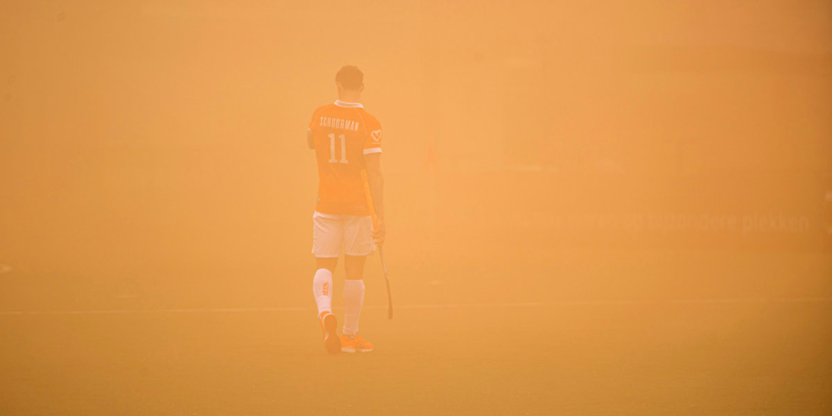 5. Door het afsteken van de oranjekleurige fakkels tijdens de halve finale van de play-offs tussen Den Bosch en Bloemendaal zag ik helemaal niets meer. Ik wilde toch een foto maken en ging op zoek naar spelers. Waarom Glenn Schuurman? Hij stond het dichtst bij mij in de buurt.