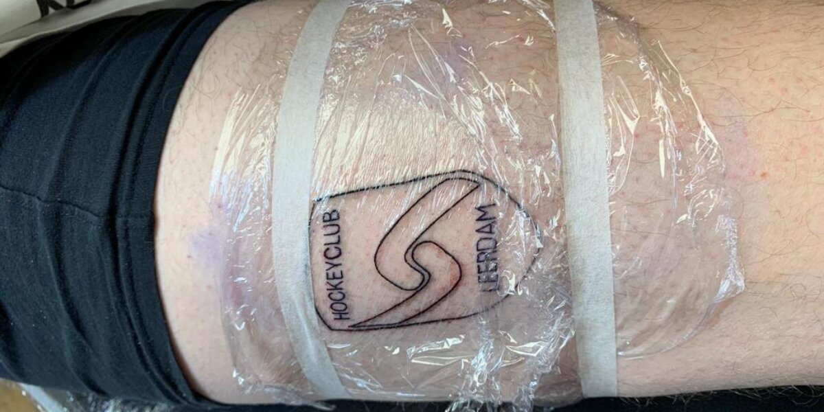 Sindsdien prijkt er op zijn rechterbovenbeen een plakplaatje van zeker vijf bij drie centimeter. En dat voor slechts negentig euro. Van Wijngaarden zelf kan er om lachen. ‘Ik vind het wel leuk. Leerdam is zo’n kleine club. We hebben 250 leden. We speelden destijds in het eerste herenteam, dat er voor het eerst na vijfentwintig jaar was. Het team is echt mijn vriendengroep, waar ik sinds groep 5 al mee samenspeel. Dat is het verhaal erachter. Heel blij ben ik er niet mee. Ik vind het vooral grappig. De herinnering is leuk en hij is netjes gezet.’