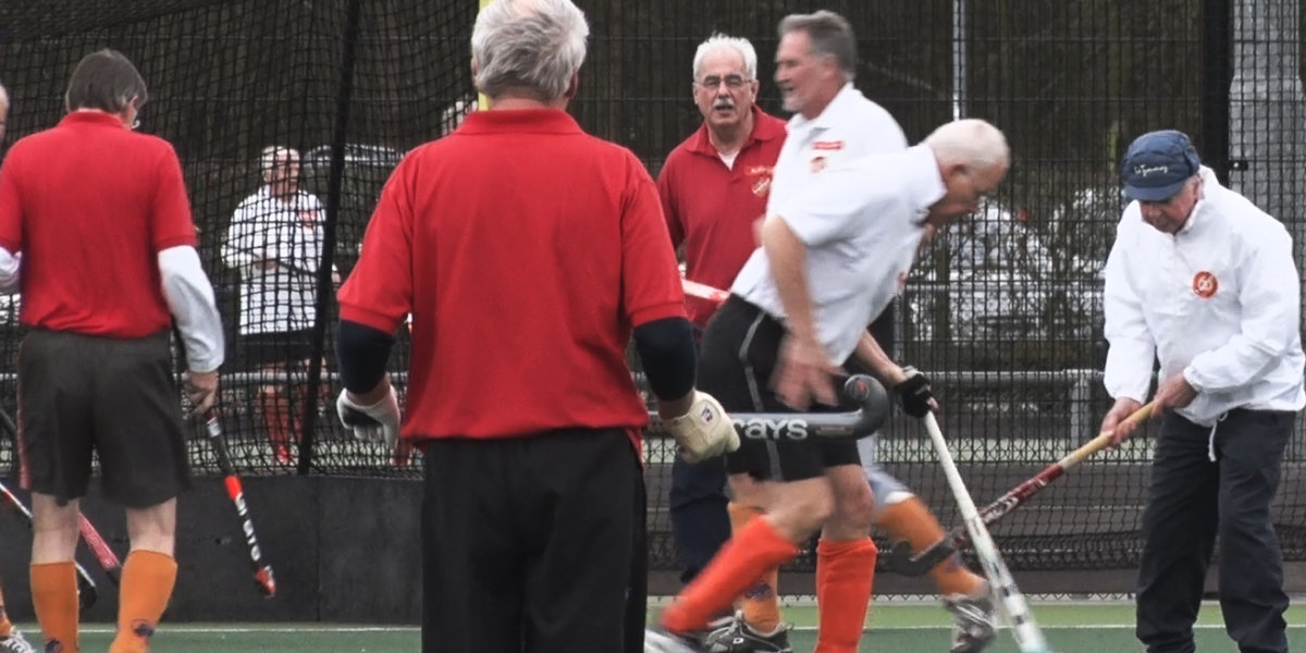 Niet gehinderd door de opstekende wind en de korte regenbui die overdreef speelden de mannen, verdeeld over 20 teams, allemaal 3 duels van 30 minuten. Het werd een middag met mooie potjes hockey, een gezellige derde helft en een gezonde dosis humor. Maar waarom zou je als fanatieke hockeyer, wanneer je de 60 bent gepasseerd, jezelf juist bij deze club aansluiten en niet kiezen om te blijven bij een reguliere vereniging?