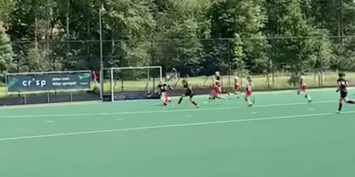 Een actie vanaf het middenveld, de cirkel in, waar Klijnhout met haar backhand uithaalt en de kruising vindt. De uitkomende keeper noch de verdedigers konden het doelpunt voorkomen, zo zuiver en hard raakte deze het net. Een fraai doelpunt van de jeugdspeelster uit Zeist.