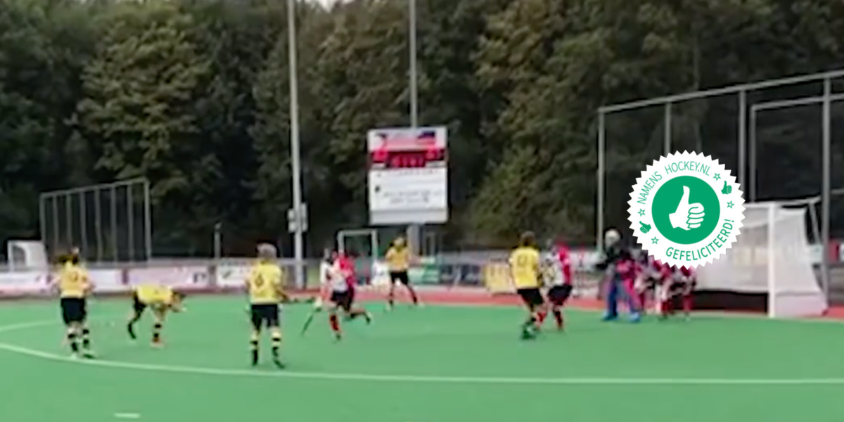 Van der Ree speelde met Berkel-Rodenrijs tegen Pollux en won overtuigend: 2-8. Of dit het eerste of achtste doelpunt is, weten we niet maar mooi is de treffer zeker. De goalie van Pollux weet de sleeppush in eerste instantie nog te keren en geeft daarmee een hoge rebound weg. Daar weet Van der Ree wel raad mee en tennist de bal boven zijn hoofd de netten in.
