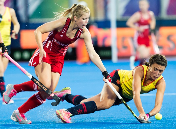 Net als bij de mannen waren de twee damesteams in de tweede halve finale erg aan elkaar gewaagd. Waar de Engelsen vanaf de 1-0 in de vierde minuut lange tijd de controle hadden over de wedstrijd, kwamen de Spaanse vrouwen vlak voor het einde van het derde kwart langszij. In het begin van het laatste kwart kregen ze zelfs een enorme mogelijkheid om op voorsprong te komen, maar Ybarra mistte een open doelkans. Acht minuten voor tijd schoot Owsley het gastland met een frommelgoal naar de finale.