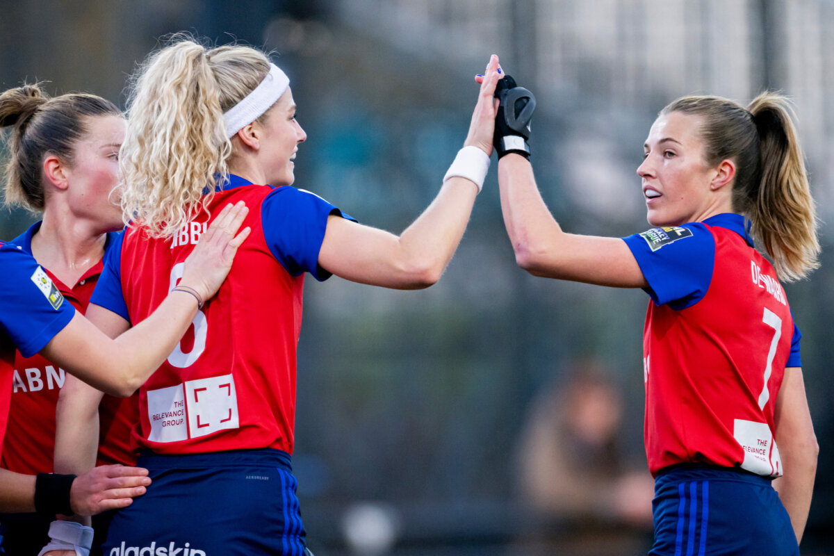 De zussen Pien en Jip Dicke speelden bij de solo een belangrijke rol met hun loopacties. ‘Zij trokken het veld helemaal open, omdat hun bewakers met ze meebewogen. Daardoor kon ik in een rechte lijn op het doel af’, aldus De Waard, die haar eerste EHL-goal maakte.