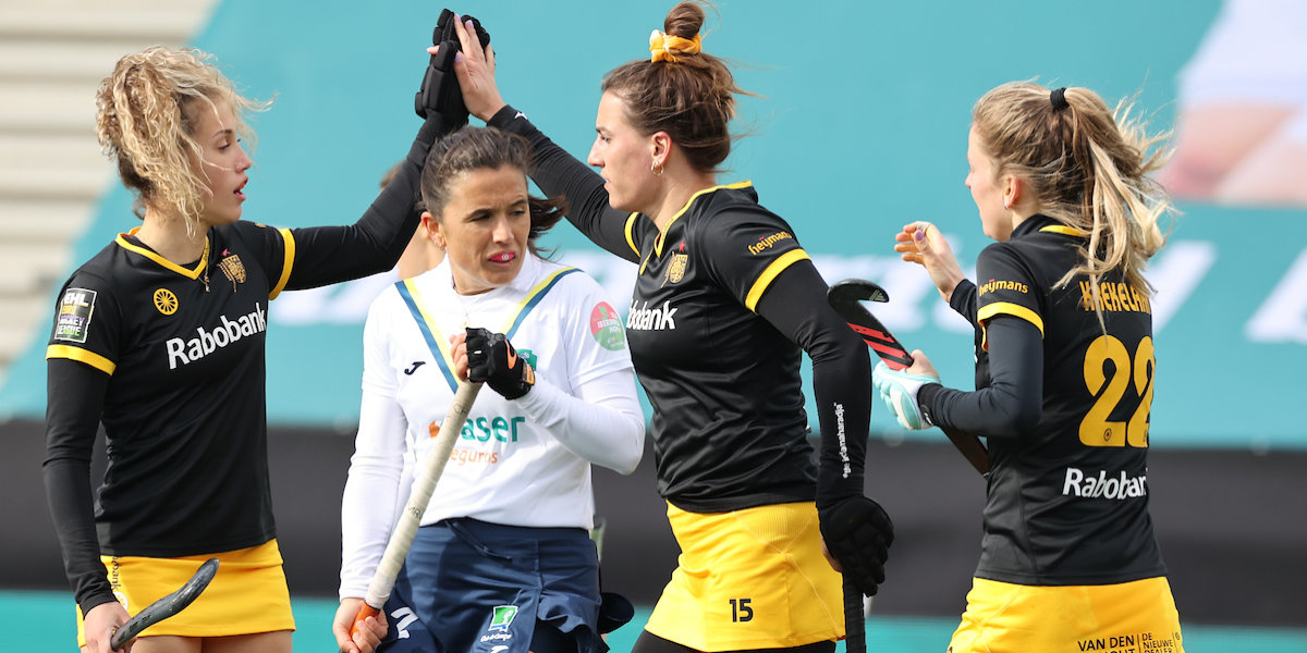 Den Bosch gaat dus de boeken in als de winnaar van de eerste EHL voor vrouwen. Een titel met een betekenis voor de international. ‘Ik vind het heel bijzonder dat we hier een toernooi spelen met de hashtag ‘equally amazing’’, zegt Matla, terwijl een paar Bossche auto’s toeterend wegrijden bij het Wagener. ‘Dat we hier samen spelen, mannen en vrouwen. Op hetzelfde toernooi. Met dezelfde naam en hetzelfde prijzengeld. Dus ja, dit is een mooie stap voorwaarts voor het vrouwenhockey.’