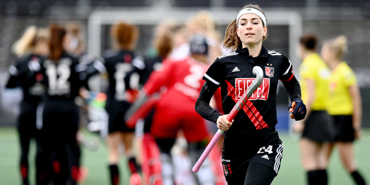 De vraag hoe de ploeg van Robert Tigges die klap zou verwerken, beantwoordde Felice Albers al snel. Met een heerlijk backhandschot vanaf de rand van de cirkel sloeg ze de 2-1 tegen de touwen (te zien in de samenvatting hierboven). Een doelpunt waarbij de gedachten teruggingen naar haar legendarische goal tegen Bloemendaal in 2020, al vloog die toen stijf in de kruising.