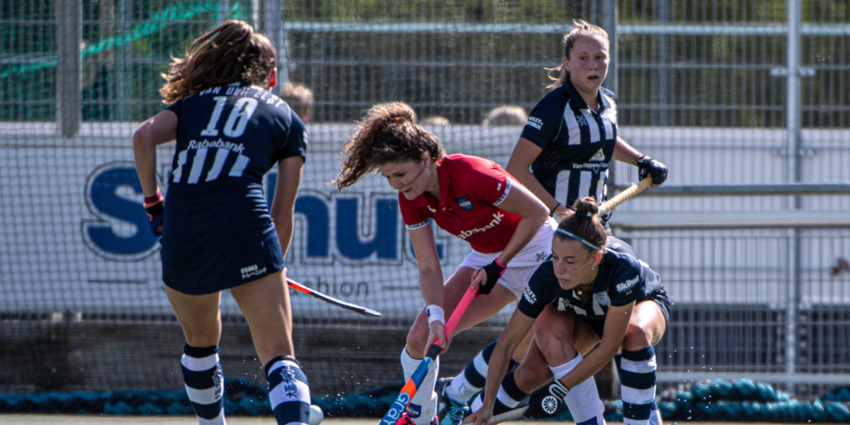 In de eerste competitiewedstrijd van het seizoen kwam ze niet op het scorebord, al scheelde dat niet heel veel. Op het middenveld stuurde de technische aanvalster twee hdm’ers met een fraaie beweging het bos in, maar de backhand die volgde ging voorlangs. ‘Het was echt lekker geweest als die bal zat. De ultieme bekroning. Laten we die dan maar bewaren voor de volgende wedstrijd’, lacht Drost.