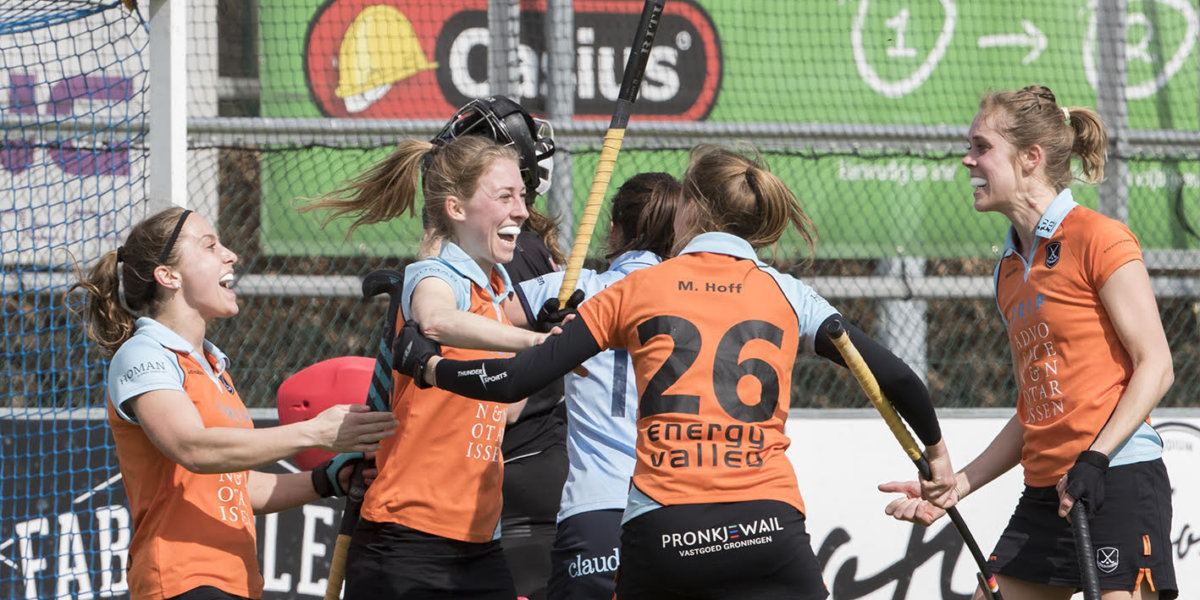 Door de zege van Groningen staat die ploeg nu in punten (vijf stuks) gelijk met Nijmegen en Huizen, dat zaterdagmiddag tijdens de inhaalronde in de Hoofdklasse Dames met 0-2 van hdm verloor. ‘We gaan erop en erover’, sprak Klaartje de Bruijn, aanvaller van Groningen, direct na afloop vol vertrouwen. Ondanks dat de ploeg van coach Marc Matarek al maanden onderaan staat, is er geen spoor van twijfel. ‘We weten wat we kunnen, daar halen we vertrouwen uit.’