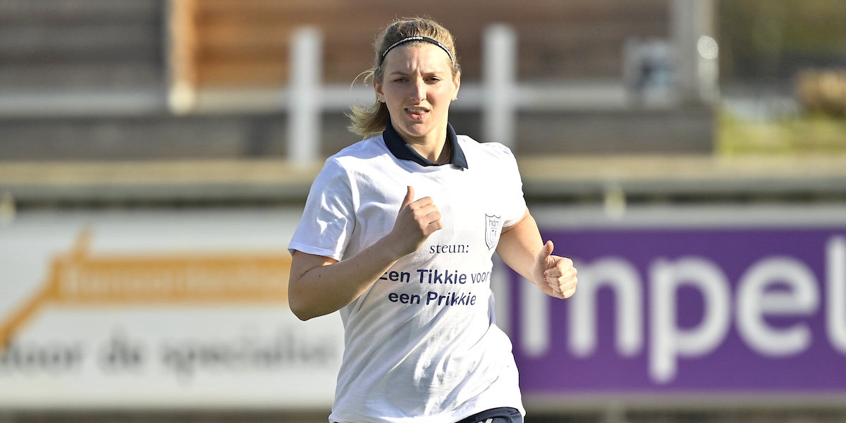 Het verhaal van Isabelle raakte het eerste damesteam van hdm. ‘We dachten meteen: hoe kunnen we helpen? In de groepsapp hebben we toen dit bedacht. Ook dankzij onze drukker trouwens, die last minute klaarstond om de shirts af te maken. Het is natuurlijk iets kleins, maar we hopen dat we zo een steentje kunnen bijdragen. Dat zoveel mogelijk mensen weten van deze actie. En zondag was natuurlijk de ideale dag om daar aandacht aan te geven.’