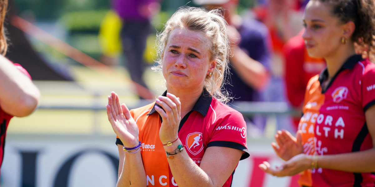 De tranen rolden over haar wangen. De wangen van aanvoerder Lisa Scheerlinck. Snikkend viel ze in de armen van haar teamgenoten. Pufte ze vervolgens onderuit gezakt uit in de dug-out. Haar Oranje-Rood is gedegradeerd. En dat doet pijn. Veel pijn.