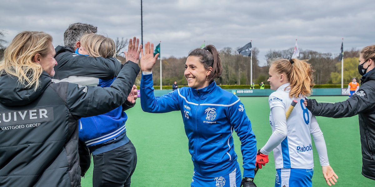 ‘Na de eerste goal gingen we vrijer spelen’, constateerde Brands, sinds 2019 actief bij Kampong. ‘We namen wat meer risico en dat pakte goed uit. Ik ben echt heel blij. De afgelopen tijd was mentaal zwaar en we moesten constant flexibel zijn. Je moet vertrouwen blijven houden. We konden het omzetten, maar dat kostte wel wat energie.’