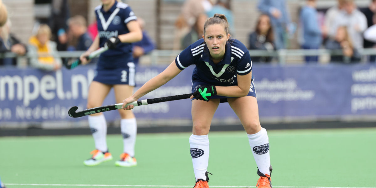 Als tip-in-koningin van het Nederlands elftal en van Amsterdam was de cirkel jarenlang het domein van Kelly Hoyng-Jonker (30). In haar debuutwedstrijd voor Pinoké (2-0 winst op Kampong), vijf maanden na haar bevalling, bewoog ze zich vooral op het middenveld, als nummer tien.