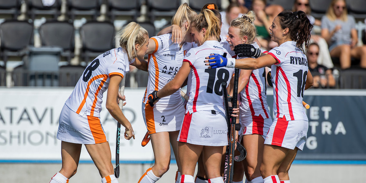Eerst die wedstrijd tegen Amsterdam. Eentje die spannender was, dan dat-ie vooraf op papier leek. De play-off-finalist had in eigen huis namelijk alle moeite met de nummer negen van vorig jaar. Die nam voor rust brutaal via de teruggekeerde Sian Keil – mooi bediend door Oranje-potential Fiona Morgenstern – de leiding in het Wagener. In het laatste kwart bracht Amsterdam de bezoekers toch aan het wankelen. Dankzij doelpunten van Sosha Benninga, die later uitviel met een op het oog zware knieblessure, en een rake flats van Sabine Plönissen bleven de punten in de hoofdstad.