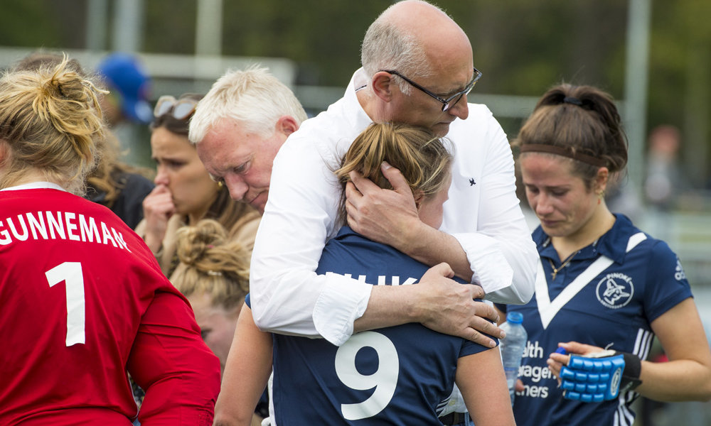 Sinds 2005/2006 waren de dames van Pinoké actief op het hoogste nationale niveau. In die twaalf jaar moesten de Amsterdammers vijf keer, waaronder drie keer in de laatste drie seizoenen, degradatie voorkomen via play-outs. Een vierde keer op rij ontsnappen via de nacompetitie zat er blijkbaar niet in voor de Steekneuzen. Een aangeslagen Frederique Malefason weet dat er zondag meer in had gezeten voor haar ploeg. ‘Op basis van ons spel hadden we het verdiend om volgende week de finale te spelen tegen Bloemendaal. Vandaag lieten we zien dat kunnen werken, vechten en kansen creëren. Maar de bal moet er dan natuurlijk wel in.’