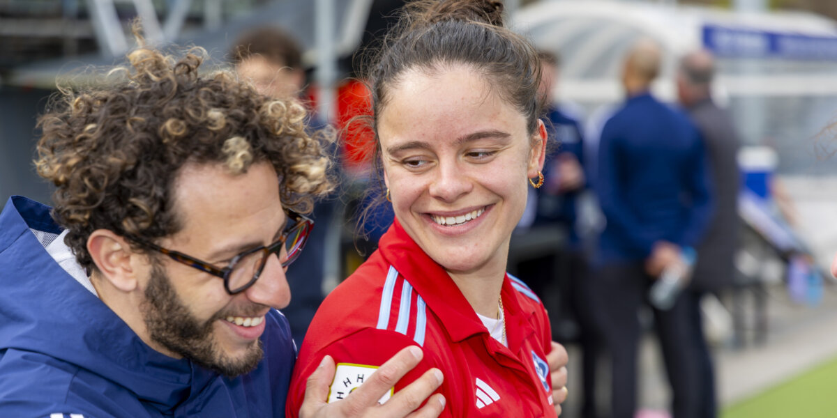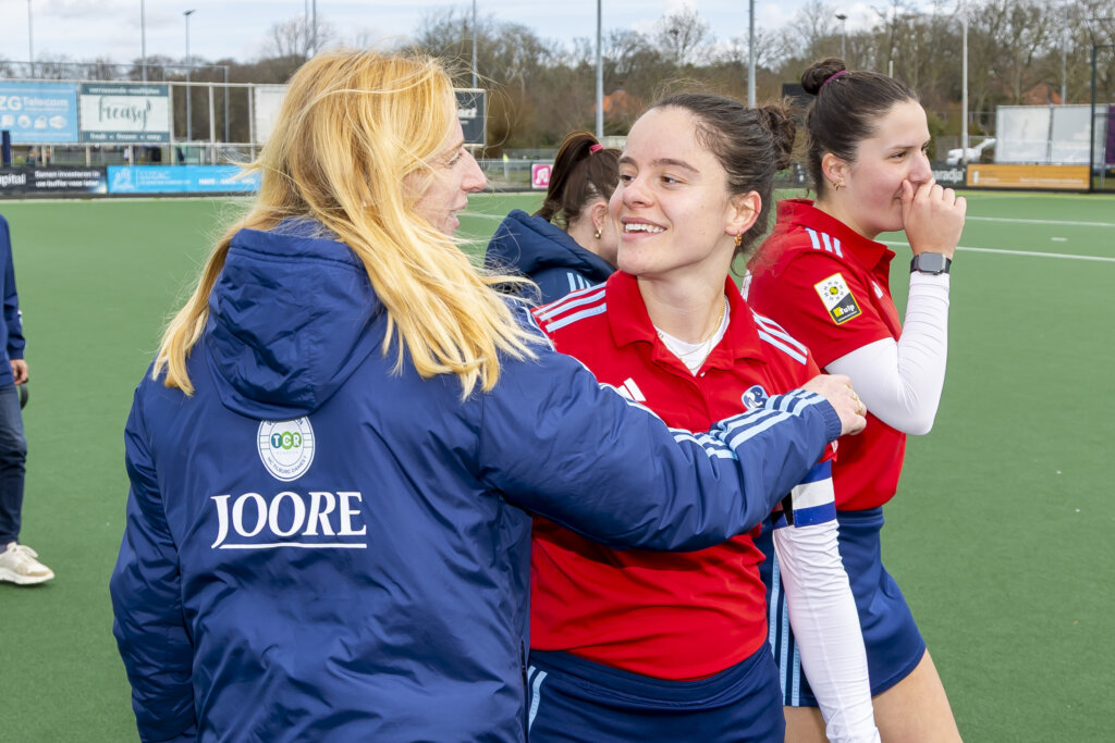 ‘Als de eerste helft iets langer had geduurd, dan waren we denk ik op achterstand gekomen’, zegt Roberts. Ze zag hoe Tilburg worstelde en de vroege 1-0 voorsprong weggaf. ‘We zijn een jonge ploeg en missen nog de nodige ervaring. We zitten in een situatie waar de meesten van ons nog nooit in hebben gezeten. In de rust spraken we uit dat we móésten winnen, maar wel door ons spel te blijven spelen en niet door te gaan verdedigen. Dat sloop er na de 1-0 te veel in. Gelukkig zakten we na de 2-1 niet in, maar zijn we juist blijven hockeyen.’