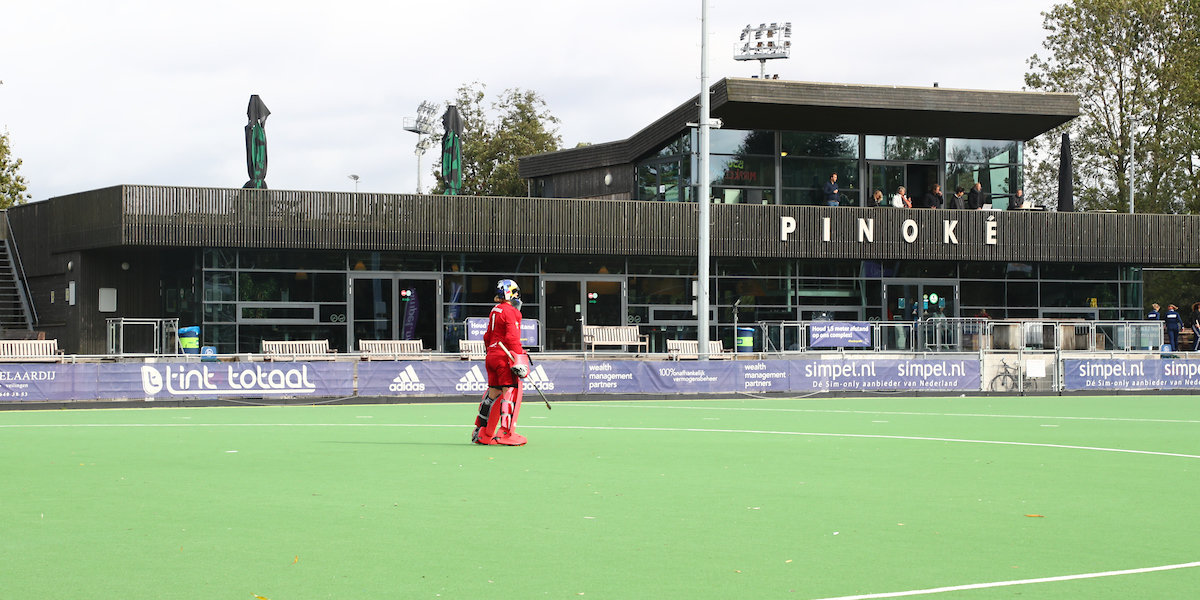 Dat was de sfeer zeker bij deze derby in het Bos tussen Pinoké tegen Amsterdam die deze zondag wordt aanschouwd door een paar geblesseerde spelers, een handvol fotografen en journalisten, enkele vrijwilligers en een beveiliger. Die staat voor het clubhuis geposteerd en controleert iedereen die langs het veld loopt waar Pinoké en Amsterdam hun wedstrijd afwerken. Dat levert bijzondere taferelen op als in het derde kwart de selectie van Kampong Heren 1 voor hun duel tegen Pinoké later deze middag, het sportpark betreedt en 64-voudig international Bjorn Kellerman de vraag krijgt: ‘Wie zijn jullie en wat komen jullie doen?’