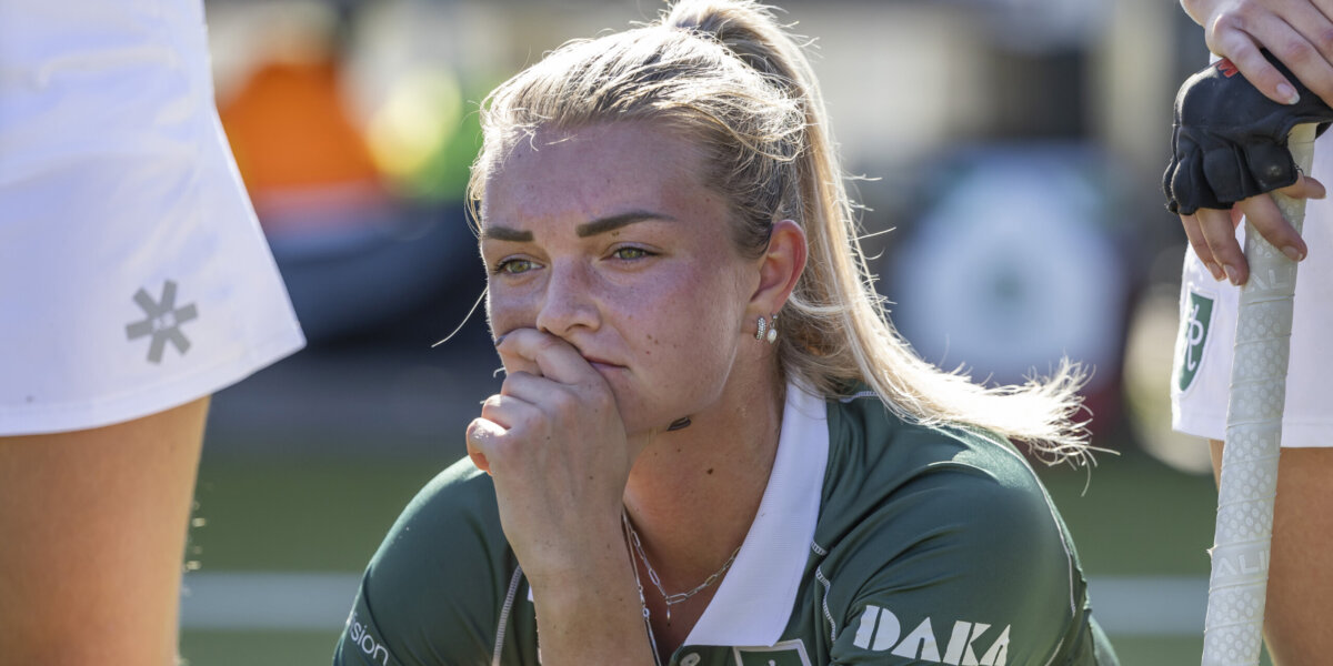 Twee strafcorners in het eerste kwart, drie in het kwart dat volgde. Bovendien nog in overtal, toen de Tilburgse strafbank met Marloes Timmermans (groen) en Jeske van Bavel (geel) tegelijkertijd goed gevuld was. Rotterdam had voor rust al op voorsprong moeten staan. Aanvoerder Lotte de Heer baalde er als een stekker van. ‘Zelfs met twee man meer maken we ‘m niet. Dan weet je dat ‘ie ook aan de andere kant kan vallen. Maar we domineerden en waren absoluut veel beter dan Tilburg vandaag.’