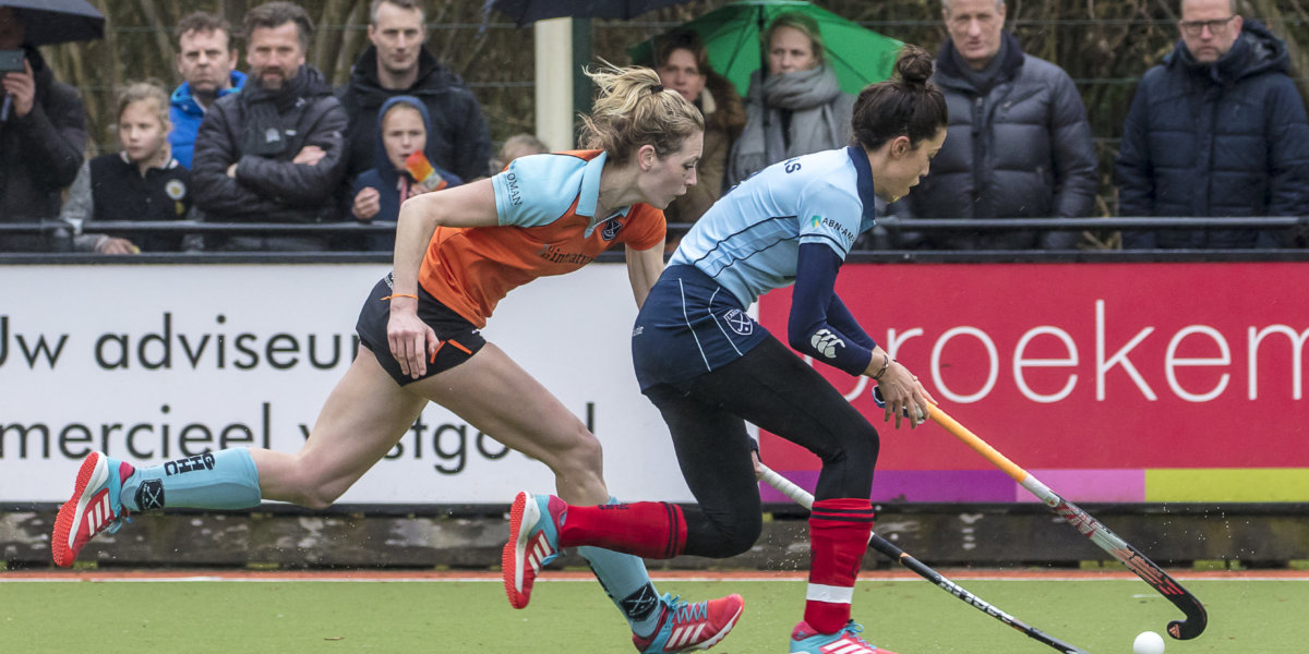 Dat steentje was in de tweede helft weer een rotsblok, waarop Laren zich keer op keer stukliep. Zoals wel vaker als aan de ene kant veel kansen worden gemist, treedt uiteindelijke een oude sportwet in werking. Uit een spaarzame uitval scoorde uiteindelijk Groningen de gelijkmaker. Een strafcorner van Leoniek Koning werd binnen getikt door Pam van Asperen: 1-1. De treffer werd door het in grote getale aanwezige Groningse publiek luid bejubeld.
