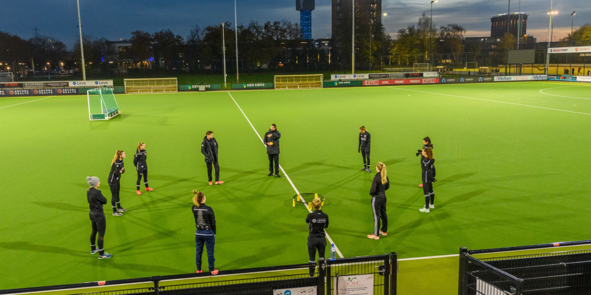 Met in totaal acht speelsters heeft coach Stefan Duyf op de training momenteel niet eens de beschikking over de helft van zijn spelersgroep. De tien ontbrekende speelsters trainen bij vertegenwoordigende teams, zoals Jong Oranje, Nederlands U19, bij de Belgische nationale ploeg of als potential met bondscoach Alyson Annan. Daar trainen ze allemaal zo’n vier tot vijf keer per week. Zij hebben de topsportstatus en mogen net als het grote Oranje trainen zonder de coronarestricties, die wel gelden voor hun acht overgebleven teamgenoten bij de club.