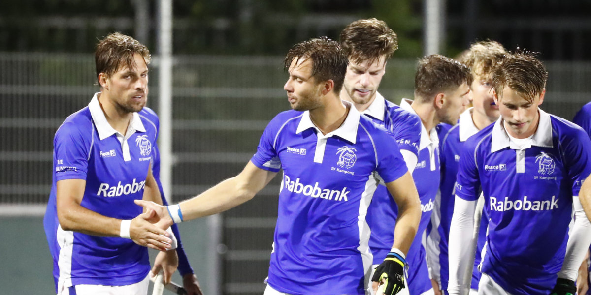 ’19 Amsterdam speelt rond en heeft veel balbezit. Kampong aast op de counter. International Bjorn Kellerman krijgt eerste kans vanuit de counter, maar is vanuit moeilijke hoek en hij slaat over het doel van Jan de Wijkerslooth.