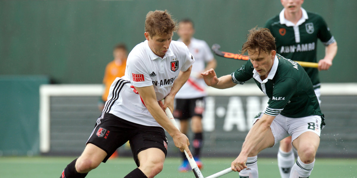 Dat was zaterdagmiddag meteen te merken. Waar het woensdagavond vooral aftasten was , werd bij Amsterdam vanaf de eerste seconde het gaspedaal ingetrapt, met de Amsterdamse branie die daarbij hoort. Niet te veel ballen meer naar achteren spelen, maar moedig voorwaarts. Het was jammer dat door het herfstige weer er geen duizenden toeschouwers waren om mee te genieten. De Amsterdamse aanvaller Robert Tigges deed weer mee, ondanks een vervelende buikspierblessure. Hij wilde deze wedstrijd spelen, ook al zou hij iets kapot maken. Het zijn de allerlaatste wedstrijden van de tophockeycarrière van de speler die in 2009 van de havenstad naar de hoofdstad overstapte.