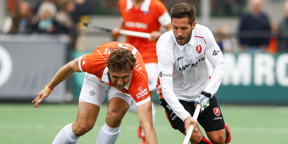 Keeper Jaap Stockmann van Bloemendaal in duel met Agustin Mazzilli van Oranje Rood tijdens de shoot-out. Stockmann was Mazzilli de baas. ‘Daar kan ik mee leven als het team wint.’