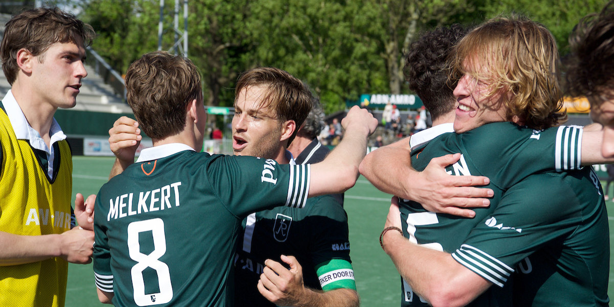Dolle vreugde bij de Rotterdamse hockeyers. Foto: Frank Uijlenbroek