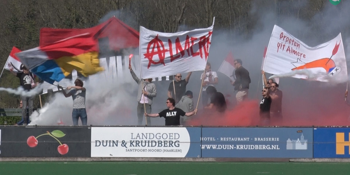 De heren van Almere speelden zondag uit tegen koploper Bloemendaal en dus reisde ook de harde kern van supportersgroep Allyminati af naar ’t Kopje. Per trein en wij gingen mee. Wat volgde was een unieke middag hockey in het kielzog van deze sympathieke ‘hockeyhooligans’. Die hun Almeerse helden, tot groot vermaak ook van het thuispubliek, fanatiek aanmoedigden met hun vele spandoeken, fakkels en luidkeels gezonden liederen.