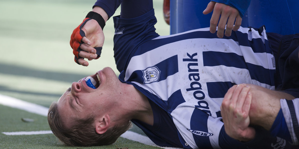 In de verloren degradatiestrijd zondag tegen Almere moest Lennart Kallenberg al snel het veld verlaten en naar het ziekenhuis, nadat hij een bal van Almere hard tegen zijn kaak kreeg. Blessures achtervolgen hekkensluiter hdm uit Den Haag al voordat het seizoen begon. ‘In de overgangsklasse vorig jaar hadden we geen een blessure’, constateert hdm-coach Ronald Hugers.