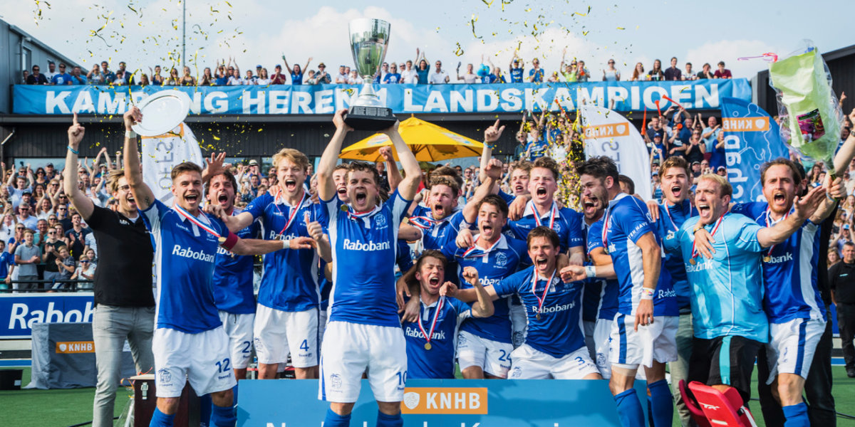 Tegen Amsterdam kwam Kampong alleen in de problemen toen international Mirco Pruyser knap de 1-1 maakte en de Amsterdammers strafcorner na strafcorner mocht nemen. Mede dankzij uitloper Sander de Wijn leverde dat niets op. Dat uitgerekend de aanvaller die zo werd gemist tijdens de play-offs – de afzwaaiende Constantijn Jonker – de beker voor het eerst omhoog hief voor het team, was een mooi gebaar. Jonker maakte door een vervelende hersenschudding bijna geen minuten. Clubiconen Caspers en Jonker zullen afzwaaien, maar wat ze achterlaten is iets wat ze mede samen hebben opgebouwd en is doorontwikkeld door anderen. De twee vrienden werden uitgebreid in het zonnetje gezet, zeker omdat ze afscheid nemen. Maar zoals Cox opmerkte: ‘We zijn niet bezig met een afscheidstournee voor Connie en Qui. We zijn bezig om historie te schrijven.’