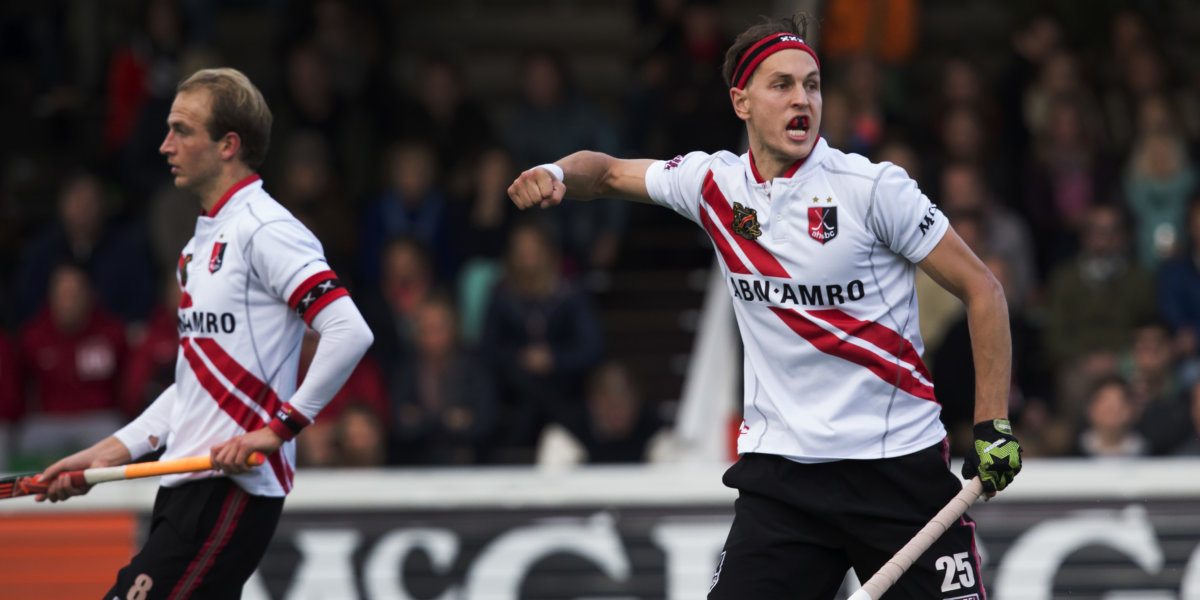 ‘De 1-1 voor Amsterdam doorrr Justin Reid-Ross!’, galmde er door de luidsprekers bij Oranje Zwart vanmiddag. Maar was dat wel zo? ‘Nee, ik scoorde niet’, lacht Reid-Ross achteraf. ‘Ik sloeg net naast de goal, nadat de corner niet goed uit de verf kwam, maar Kenny (Bain, red) tipte hem binnen.’ Een belangrijke goal, die Amsterdam volgens Reid-Ross vertrouwen gaf. Amsterdam won, in de eerste finale om het landskampioenschap, met 1-2 van Oranje Zwart.