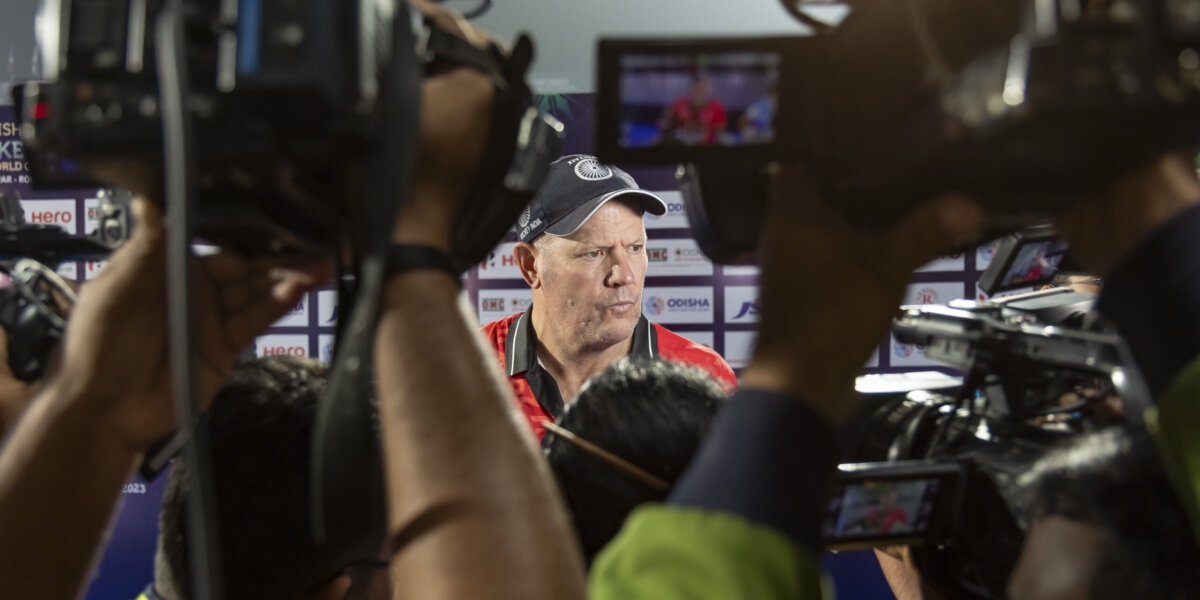 Bondscoach Graham Reid had wat uit te leggen na de uitschakeling van India in de cross-overs. Het gastland verspeelde tegen Nieuw-Zeeland een 3-1 voorsprong en verloor uiteindelijk na het nemen van shoot-outs. Voor de tientallen camera’s deed de coach zijn verhaal. Het bleek zijn laatste persoptreden te zijn, een week later stapte hij op.