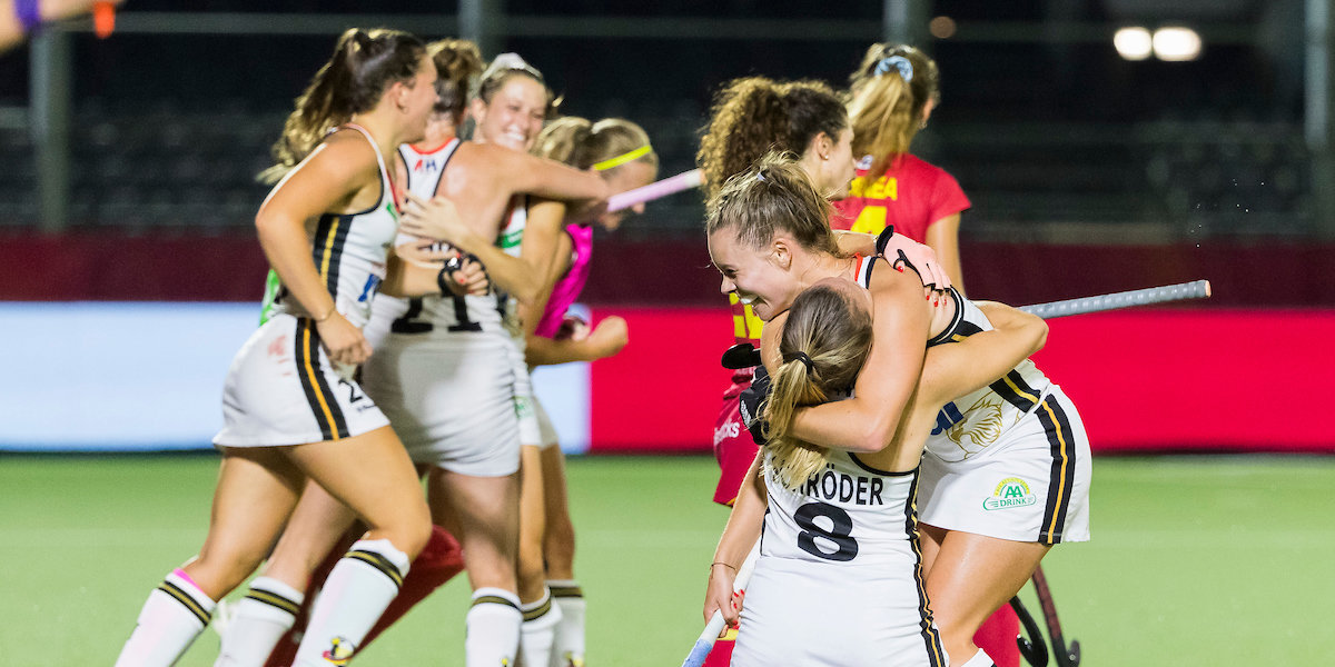 Duitsland vierde het bereiken van de finale alsof ze het EK hadden gewonnen. Die blijdschap zou ze nog kunnen opbreken in de finale tegen wereldkampioen Nederland. Zondagmiddag staan Nederland en Duitsland tegenover elkaar voor de Europese titel en het ticket voor de Olympische Spelen van Tokio.