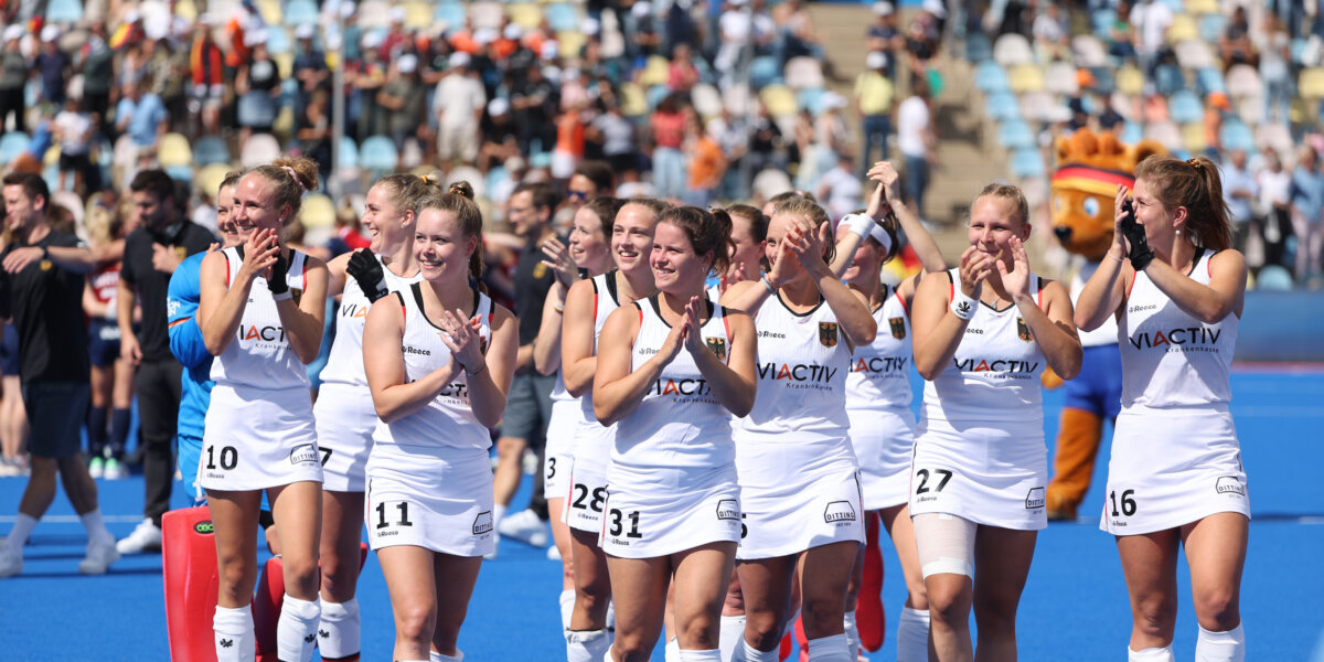 Goud werd het niet voor Duitsland, maar de dames hielden aan het EK voor eigen publiek toch nog een medaille over. De ploeg verbeet de teleurstelling van het mislopen van de eindstrijd het best en won de strijd om de derde en vierde plaats met 3-0 van Engeland, dat in de laatste twee duels tien goals incasseerde. Sonja Zimmermann, de nieuwe aanwinst van Amsterdam, opende de score en tilde haar doelpuntentotaal dit EK naar vijf. De andere treffers kwamen op naam van Charlotte Stapenhorst en Jette Fleschütz.