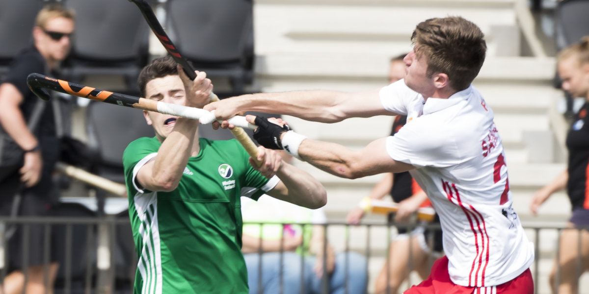 In de 36ste minuut kreeg de Ier Shane O’Donoghue een gele kaart voor een agressieve armbeweging naar zijn directe tegenstander, na een burenopstootje. Het bezegelde het lot van de Ieren, die twee jaar geleden nog de halve finale haalden op het EK en met een 1-1 tegen Duitsland en 7-1 tegen Polen in poleposition stonden om die ongelofelijke prestatie te evenaren. Een gelijkspel of een overwinning was genoeg tegen hun grote broer Engeland. In het ondertal kreeg Engelsman Sam Ward de bal achter David Harte. Toch vocht Ierland tot letterlijk de laatste seconde, toen er nog een Ierse pass door de Engelse cirkel vloog, maar niet werd aangenomen.
