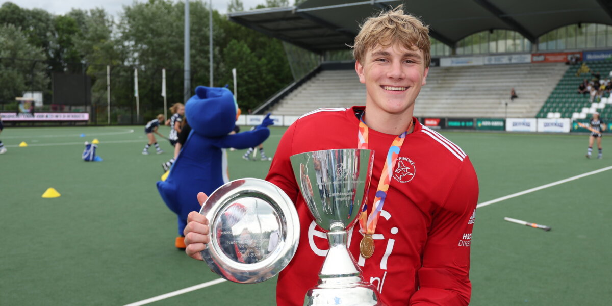 Zijn rechterhandschoen ging begin deze week kapot. Zijn bescherming, maar vooral verlengstuk van zijn stick. Op Pinoké lag er nog wel een, maar die was een stuk lichter dan keeper Olivier Smeets (15) gewend was. Twee keer kon hij ermee trainen, voor de NK-finale tegen Kampong. De belangrijkste dag uit zijn leven. Smeets werd de held en keerde vier shoot-outs. Met wellicht zijn nieuwe lievelingshandschoen.