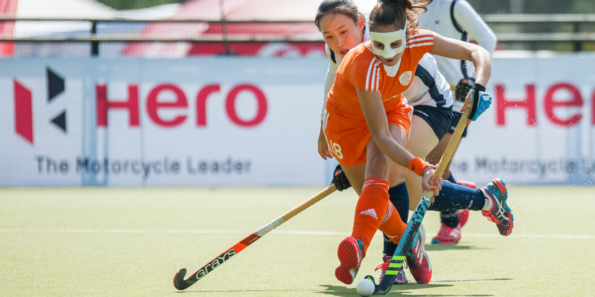 Mocht Pleun van der Plas ooit naar een gemaskerd bal willen dan heeft ze haar masker alvast binnen. De Jong Oranje-speelster brak voor het WK haar neus, en speelt nu noodgedwongen met een masker op. ‘Het is even wennen, maar het gaat steeds beter’, stelt Van der Plas met gevoel voor understatement: ze scoorde een hattrick in de openingswedstrijd tegen Zuid-Korea (10-2).