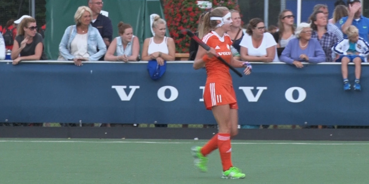 Maartje Krekelaar speelt tijdens het Volvo Invitational Tournament met een gebroken jukbeen. Beschermd door een masker speelt ze een ijzersterk toernooi en pakte ze vandaag alweer de derde zege op rij met Jong Oranje Dames. Voor de camera van hockey.nl vertelt ze over het spelen met een masker en de stijgende lijn die de Jong Oranje Leeuwinnen te pakken hebben.