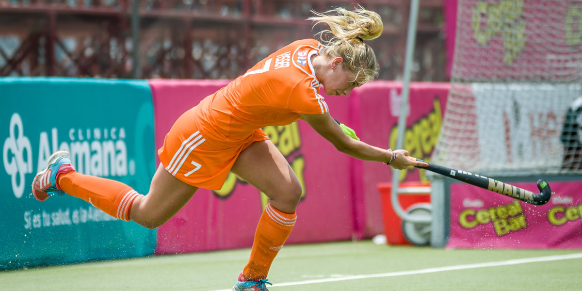 Verdedigster Lisa Visser was in de slotfase van de verloren WK-finale tegen Argentinië vliegende keepster bij Jong Oranje. Dat had ze eigenlijk nog nooit gedaan, maar ze deed het vol overtuiging. Toen Argentinië in de laatste minuut nog in de Nederlandse cirkel kwam dook ze met een snoekduik richting de bal. ‘Ik dacht: alles of niks. Of het is 4-2, of ik heb hem en dan kan er misschien nog een counter uit komen.’