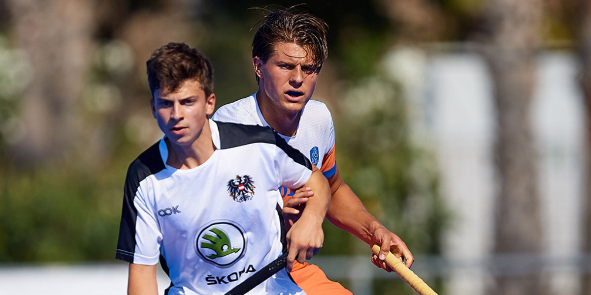 De kop is eraf voor de Jong Oranje Heren. Maandag begon de ploeg het EK in Valencia op de best mogelijke manier. Oostenrijk werd ondanks warme omstandigheden onder de voet gelopen. Jong Oranje won met 10-0. ‘Het is toch een eerste wedstrijd van het toernooi en dan moet je goed starten’, zegt spits Brent van Bijnen, die twee keer scoorde voor de ploeg van bondscoach Michiel van der Struijk.