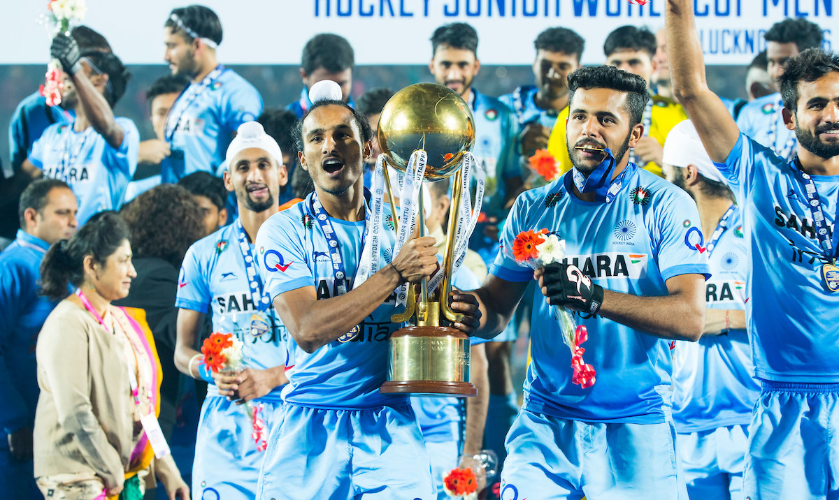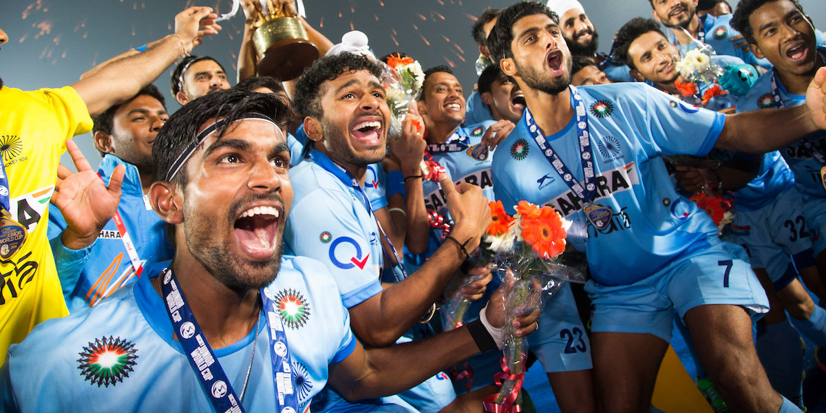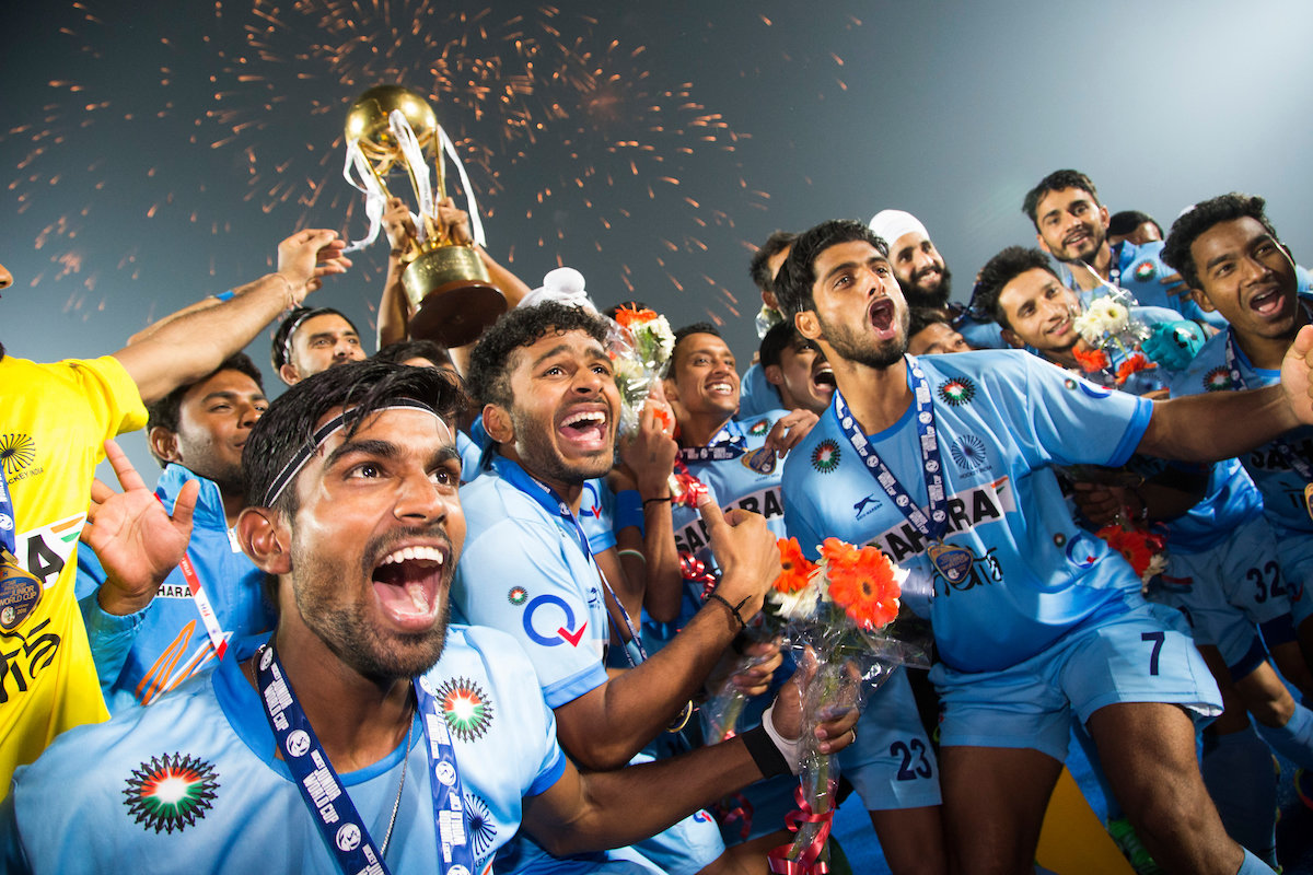 Fanatiek aangemoedigd door het eigen publiek in het Major Dhyan Chand Stadium in Lucknow hebben de mannen van Jong India zondagavond de wereldtitel in de wacht gesleept. In de finale werd Jong België verslagen met 2-0. Na het laatste fluitsignaal ging het vijftienduizend-koppig publiek uit zijn dak. ‘De hele entourage was geweldig. Dit is zo ongelooflijk belangrijk voor de jongens en ook voor het hele hockey in India. We gaan weer een stap vooruit en dat is waarvan we hier leven eigenlijk’, aldus Roelant Oltmans na afloop.