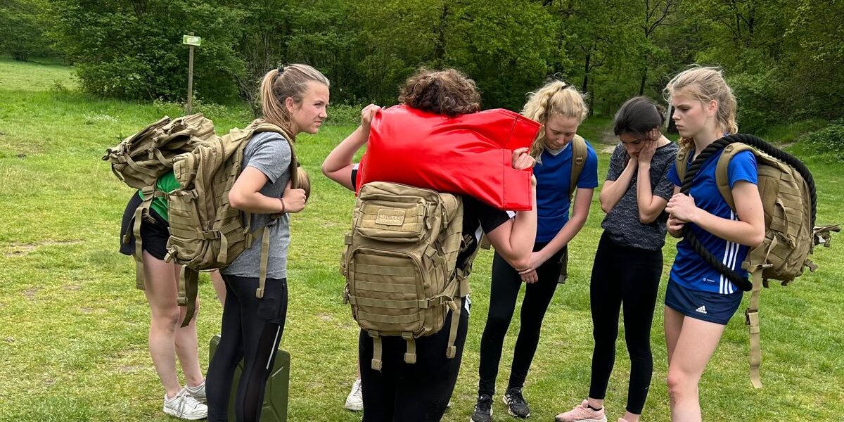 Met een met jerrycans gevulde rugtas van twintig kilo zandheuvels oprennen, een obstakelrace, minuten in een squathouding zitten: een greep uit de fysiek loodzware activiteiten die het team op een zondag in mei te wachten stond. De training in de bossen van Doorn, geregeld door coach Arnoud Boersma, was voor de speelsters zelf een complete verrassing.