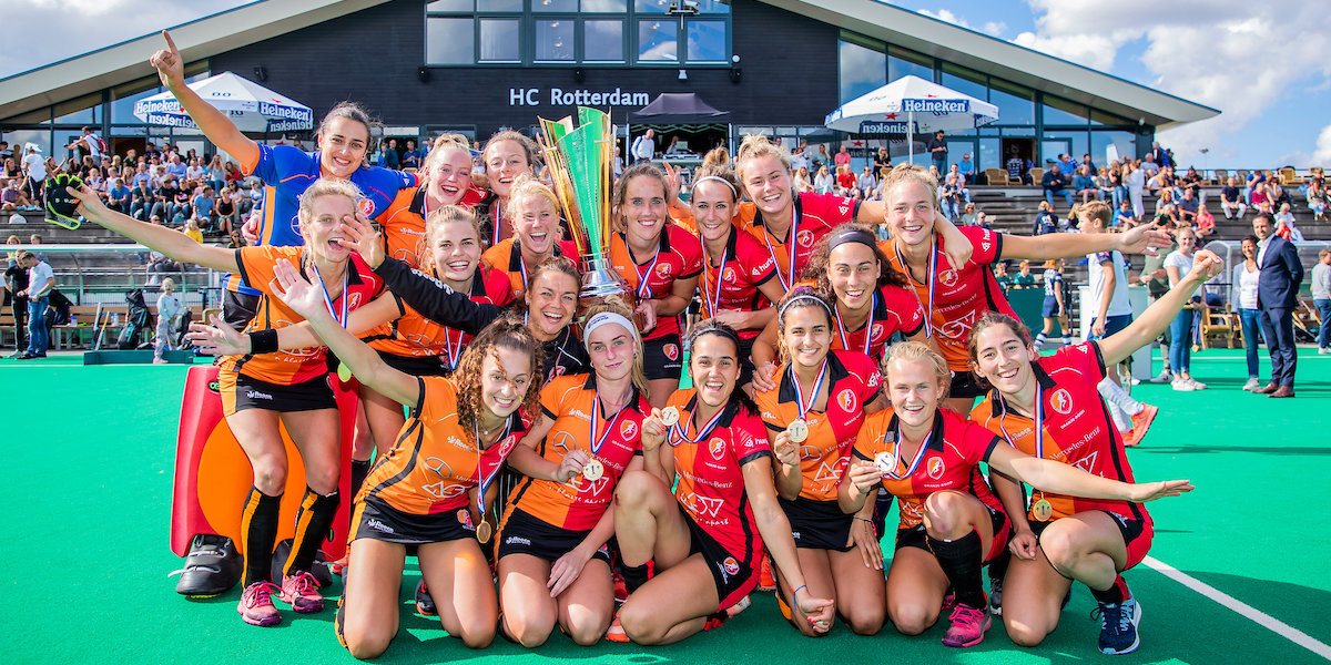 ‘We hebben hem en hij is zwaar ook’, zei Donja Zwinkels van Oranje-Rood na de prijsuitreiking over de trofee. ‘De Gold Cup was al een flinke beker en deze is ook enorm. Mooi? Natuurlijk is ie mooi. Elke beker die je wint, is mooi. Het is de eerste editie. Dat is ook leuk. En een finale wil je altijd winnen.’