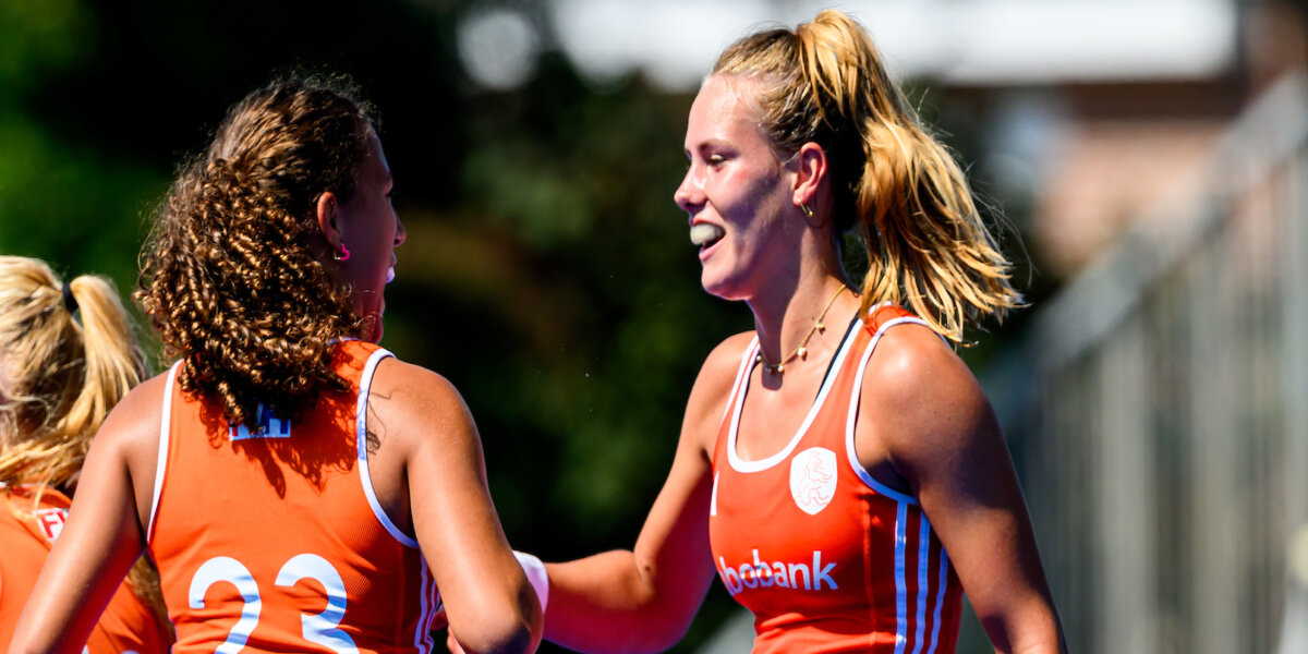 Want als ze ergens al ervaring in heeft, is het in het winnen van prijzen. Op haar slaapkamer hangen medailles van kampioenschappen met HDM. Een paar in de zaal, een paar op het veld. Hoeveel het er zijn, durft ze niet te zeggen. ‘Ze hebben wel allemaal een eigen verhaal’, verzekert ze. Nu jaagt ze op een nieuwe. Een plak met Oranje.