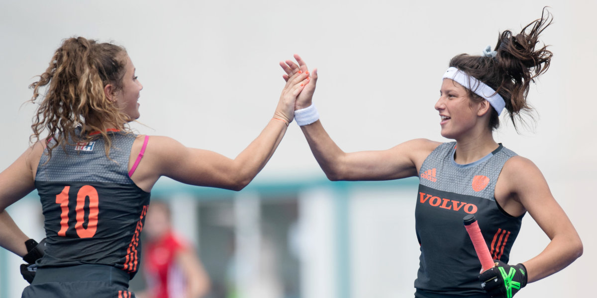Met een honderd procent score gaat Nederlands Meisjes A de halve finales in. Het laatste pouleduel werd gemakkelijk met 8-0 gewonnen. Voor Oranje scoorden Bente van der Veldt en Carlijn Tukkers twee keer. Zij treffen vrijdag in de halve finale Engeland.