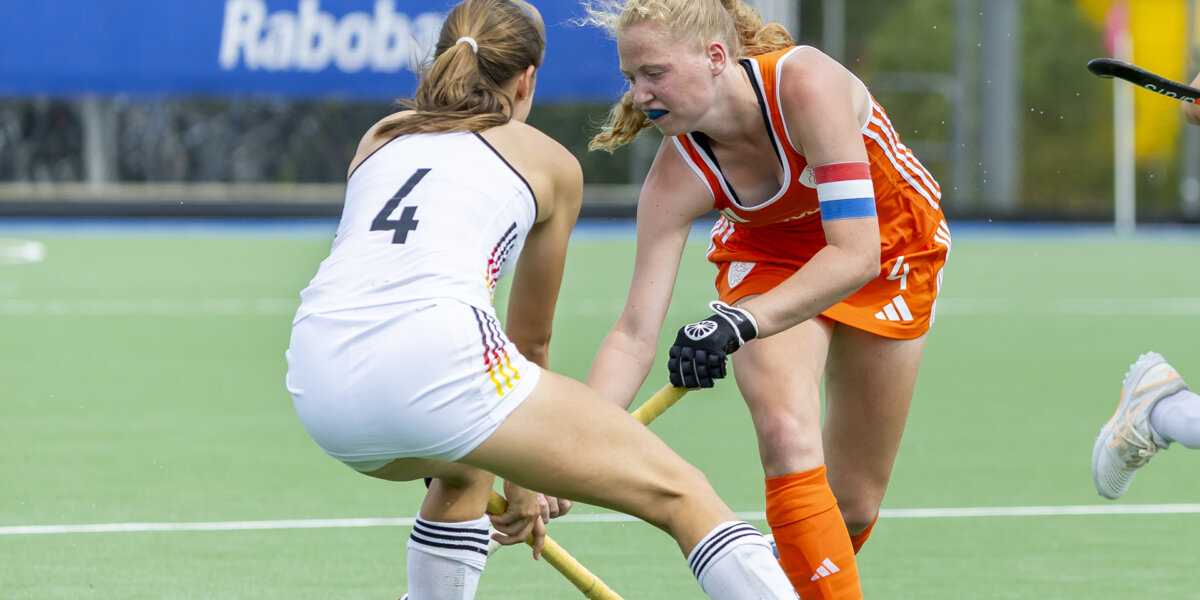 De 15-jarige verdedigster stond in het hart van de Oranje-defensie die in de finale afrekende met Duitsland: 4-0. Opvallend, want eerder in de week werd er nog met 6-2 verloren van diezelfde tegenstander. ‘We zaten echt nog in een groeifase,’ blikt Koomen terug op die eerste ontmoeting. ‘Maar het liet ons ook zien: als je dit toernooi wil winnen, moet het beter. En dat hebben we daarna echt laten zien.’