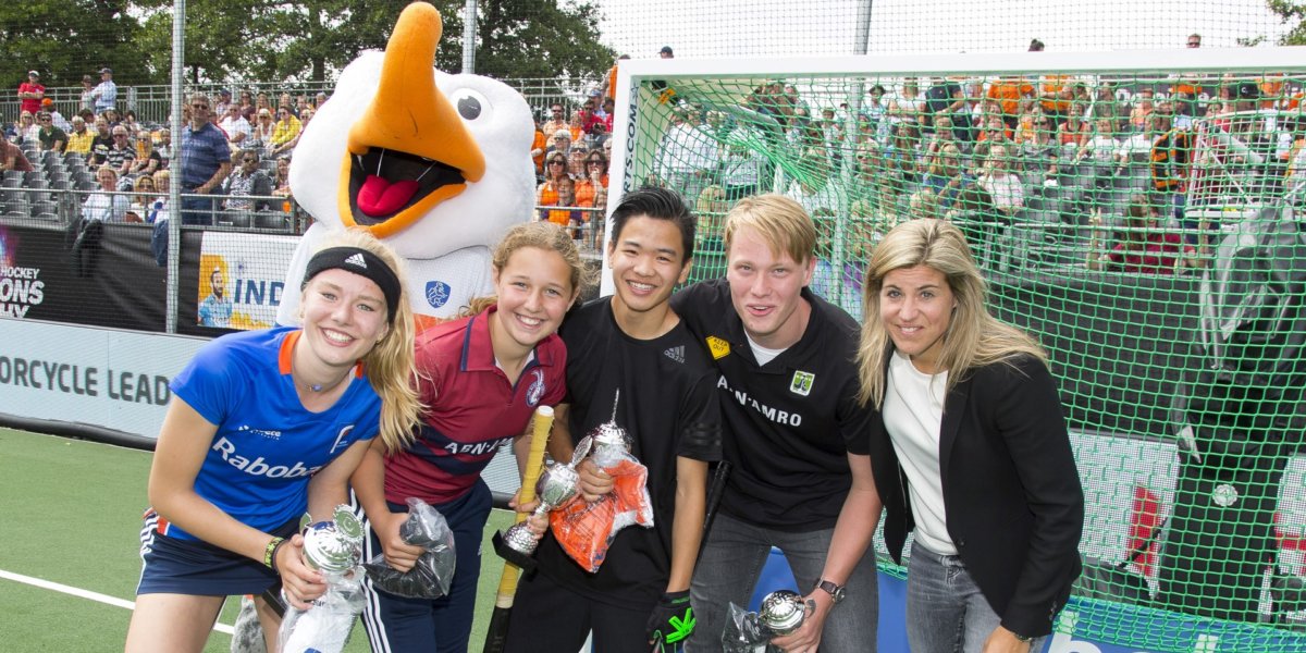 Vanmiddag vond de finale van het NK Shoot Out plaats op hockeyclub B.N.M.H.C Zwart-Wit. In de rust van de wedstrijd Nederland – België ontvingen de winnaars onder luid applaus de prijzen uit handen van voormalig international Kim Lammers.