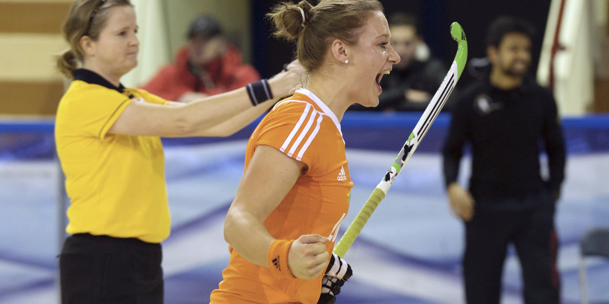 Lieke van Wijk was na de halve finale tegen Duitsland op het EK Indoor de gevierde vrouw: ze scoorde 3 strafballen. Van Wijk is daardoor met in totaal 7 treffers vooralsnog topscorer van het EK Indoor in Minsk. ‘3 strafballen maken in 1 wedstrijd, dat is me echt nog nooit gebeurd’