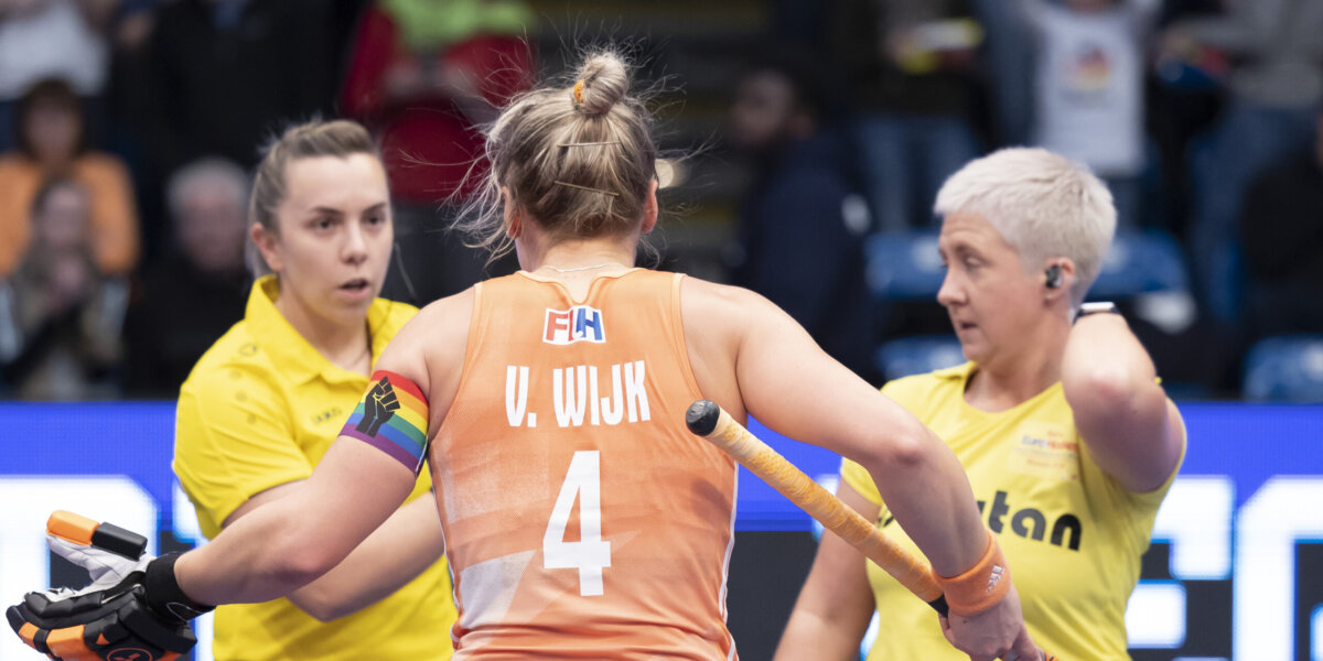 En dan die krankzinnige slotseconden van de finale. Onder het oorverdovende geklap van de Duitse supporters, die al massaal aftellen naar het eindsignaal, pompt Gabrielle Mosch de bal in een ultieme poging hard richting de Duitse cirkel. Haar schot wordt onderschept door Maertens, maar daarbij springt de bal hoog van haar stick waarna ze de bal ook nog wegpusht. Terwijl de zoemer in de hal klinkt, de Duitse speelsters al juichend het veld inrennen met fotografen om hen heen, heeft scheidsrechter Gemma Jones in alle drukte gefloten voor een strafcorner voor Oranje.